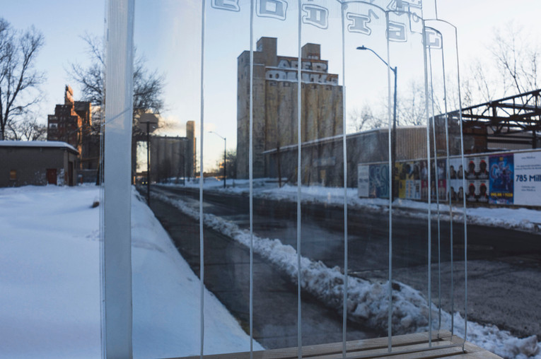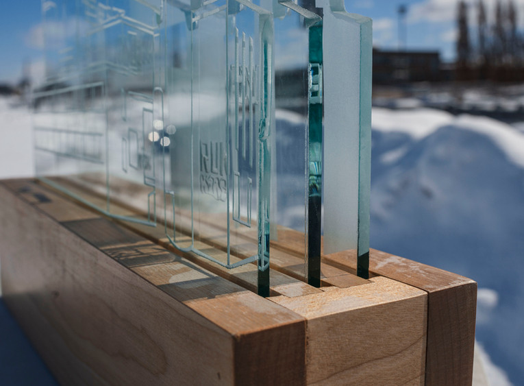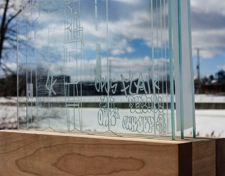 The aim of the sculptures is to showcase the raw beauty of abandoned buildings. Although they are often described as undesirable, they are also monuments and symbols for the cities that house them. For me, they represent destruction, but also creation, change, and adaptation. The works consist of three engraved glass panels, acting as a filter through which I present my perception of these unusual buildings.